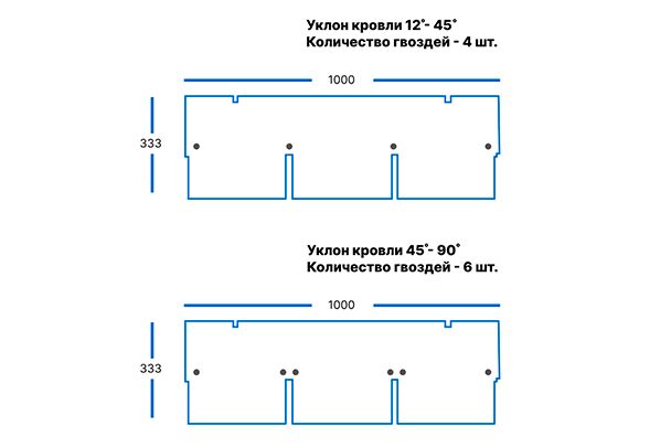 Схема расположения гвоздей при укладке гибкой черепицы
