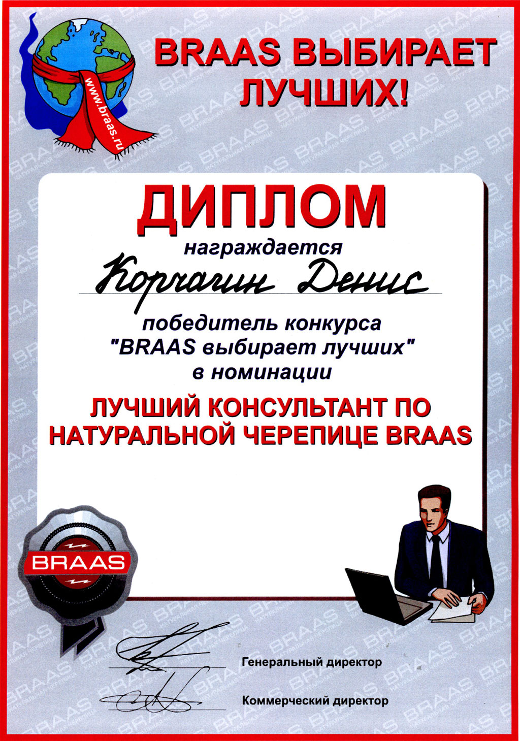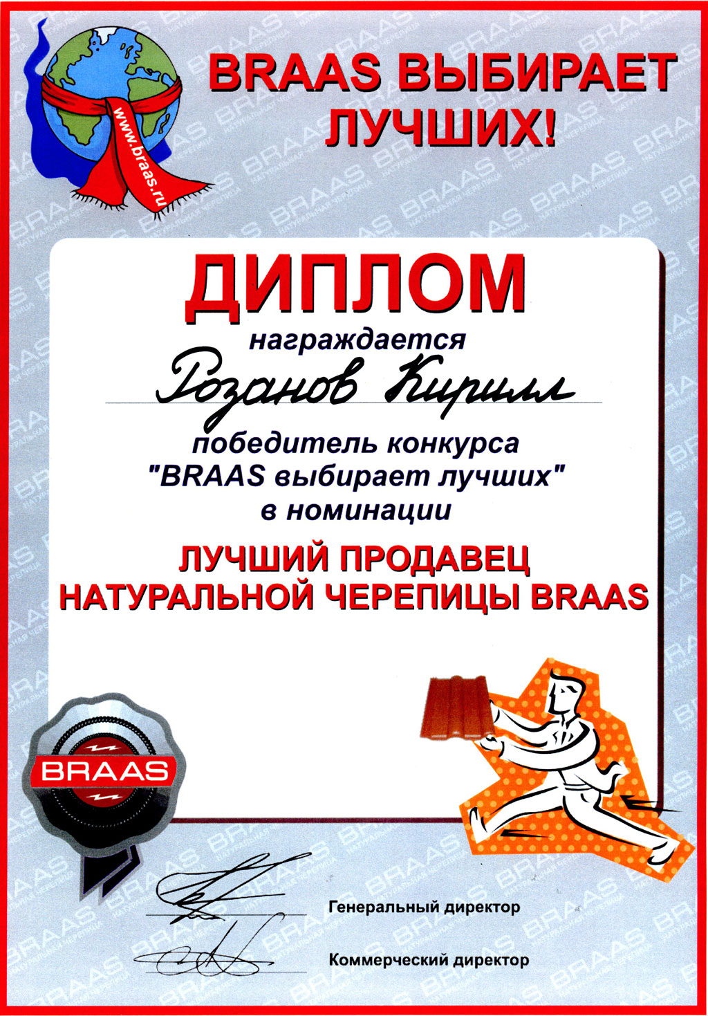 В августе 2008 г. состоялось торжественная церемония подведения итогов и награждения лауреатов конкурса «BRAAS выбирает лучших», проводимого в течение лета представительством «БРААС ДСК-1» в Санкт-Петербурге. Компания «ТОП ХАУС» стала победителем в номинации «Лучший сервис-партнер BRAAS». Лучшим консультантом по натуральной черепице BRAAS был назван Денис Корчагин, а лучшим продавцом - Розанов Кирилл, менеджеры компании «ТОП ХАУС».