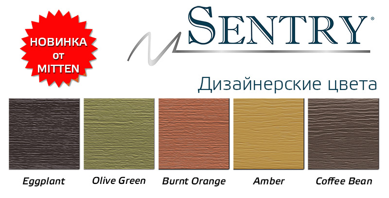 Компания Миттен (Канада) запускает новую линейку ярких оттенков сайдинга серии Sentry. Использование насыщенных цветов сайдинга - один из лучших способов подчеркнуть индивидуальность загородного дома. Создайте неповторимый фасад Вашего дома с Mitten!