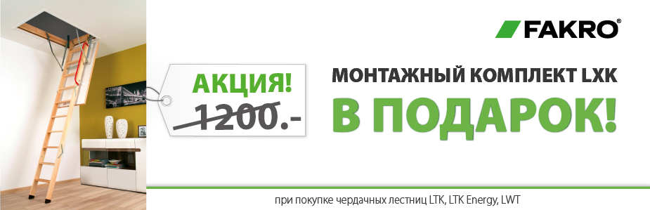 При покупке чердачных лестниц FAKRO моделей LTK, LTK Energy, LWT в период до 31 октября 2017 года, монтажный комплект LXK – в подарок!