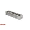 Эти блоки созданы для выразительных фасадов и ограждений. Их лицевые стороны имеют глубокую царапаную текстуру, а торцевые — гладкую поверхность, что создаёт игру света и тени, характерную для современного минимализма и хай-тека.